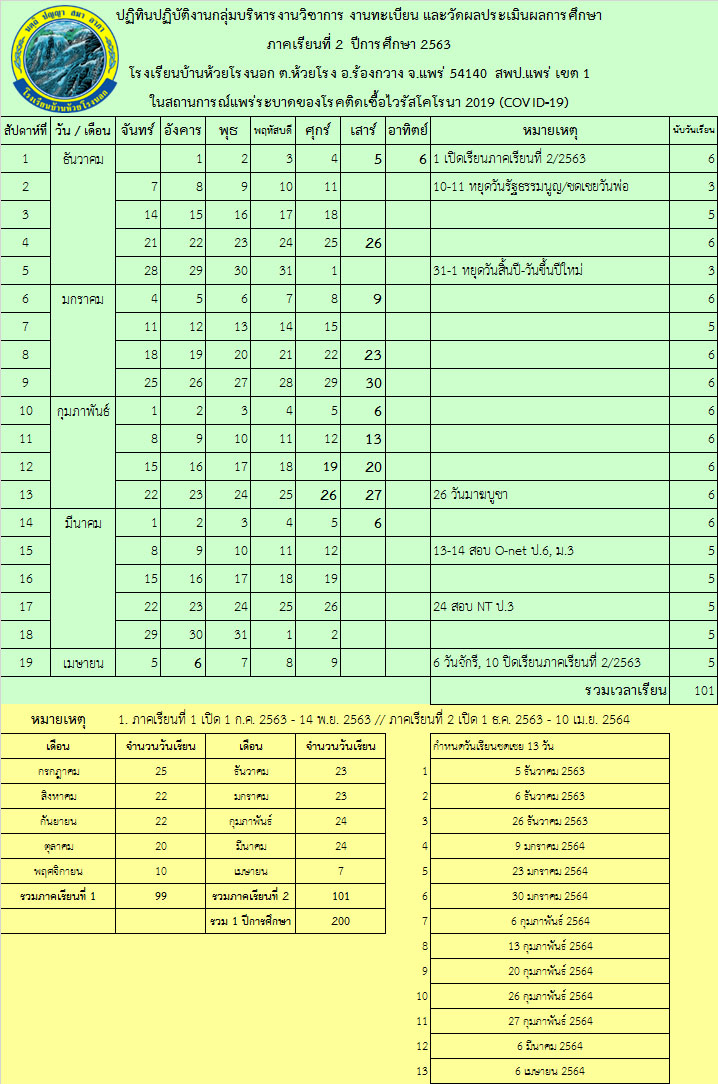 ปฏิทินการดำเนินงานบริหารวิชาการ